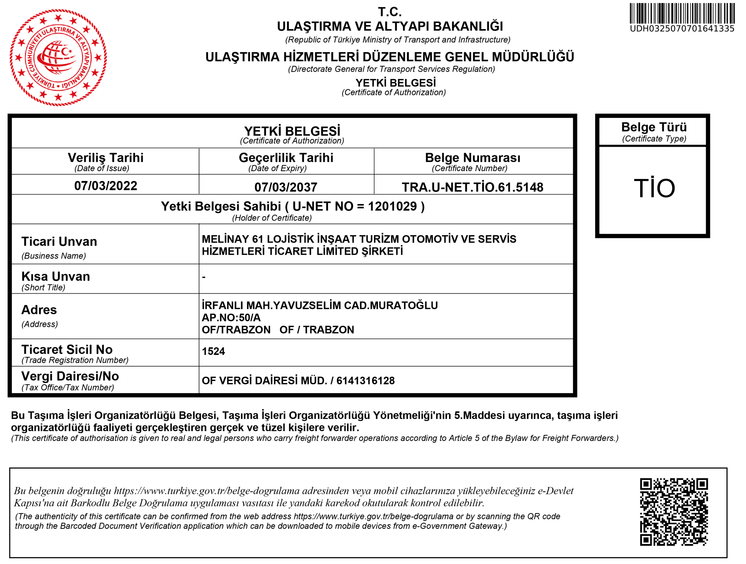 TİO Yetki Belgesi – Taşıma İşleri Organizatörlüğü